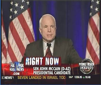 And yesterday, when Republican nominee (but no friend of conservatives) John McCain spoke, Fox News "accidentally" put up this: