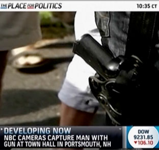 MSNBC was told by local police that the guy with the gun has a legal permit to carry, and he’s nowhere near where Obama will be, and he’s under constant surveillance.