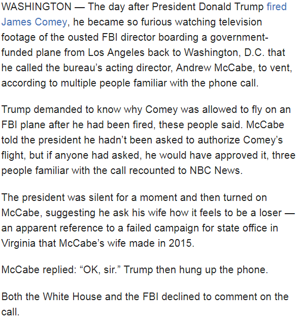 Rather than “OK, sir”, McCabe should have shot back “I don’t know. You tell me, sir.”