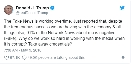 And notice how anything negative about Trump is automatically “Fake.” So rather than have Sarah Huckabee Sanders run out every day and face, you know, questions … wouldn’t it be simpler to just take away the media’s credentials? Except, of course, for Fox News and select alt-right websites. Free up some space for the Enquirer.