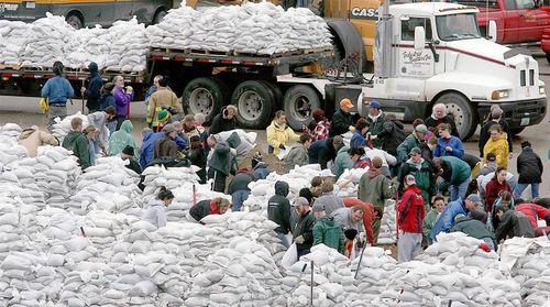 Doesn't look good for the folks in Fargo and Moorhead, MN. But it is nice to see what motivated citizens can do when they pull together: Everything is closed. Really — everything. But there's a good opportunity for floodblogging.